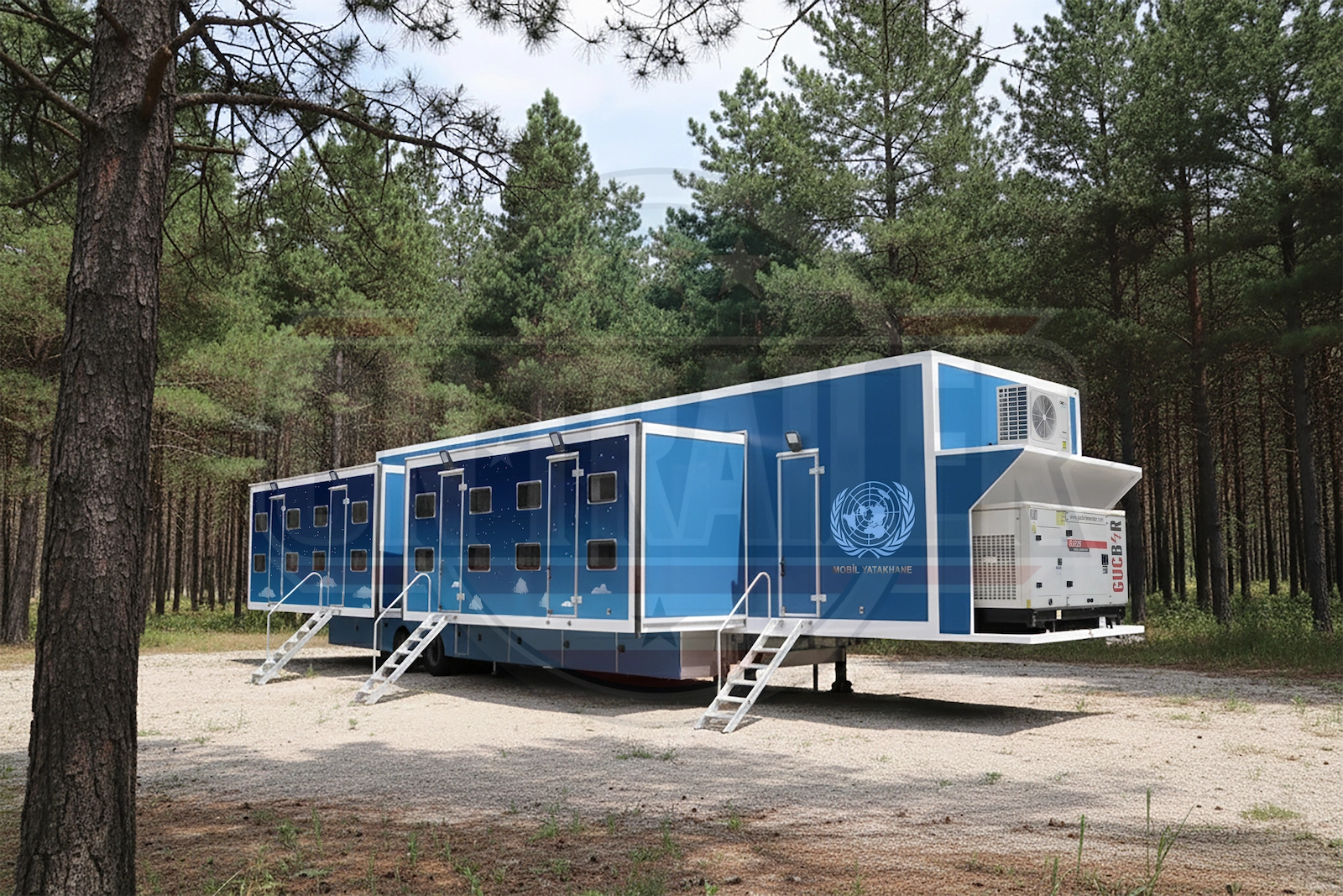İçeride ranza sistemiyle 20-30 kişinin konaklayabileceği bir alan yaratılır. Açılan her iki kanatta da pencereler ve havalandırma menfezleri bulunur. Treyler şasisi ağır yüke ve esnemeye dayanıklı ST52 çelikten imal edilir.